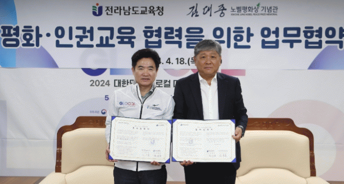 [¹Ìµð¾îÀü³² °í±Ô¼® ±âÀÚ]Àü¶ó³²µµ±³À°Ã»°ú ±è´ëÁ߳뺧ÆòÈ»ó±â³ä°üÀº 4¿ù 18ÀÏ Àü³²±³À°Ã»¿¡¼ ¹Ì·¡¼¼´ë ÆòÈ¡¤ÀαDZ³À°À» À§ÇÑ ¾÷¹«Çù¾àÀ» ¸Î¾ú´Ù. À̳¯ Çù¾à½ÄÀº ±è´ëÁß ±³À°°¨°ú ±èµÎº¹ ±è´ëÁ߳뺧ÆòÈ»ó±â³ä°üÀåÀ» ºñ·ÔÇÑ µÎ ±â°ü ¡¦