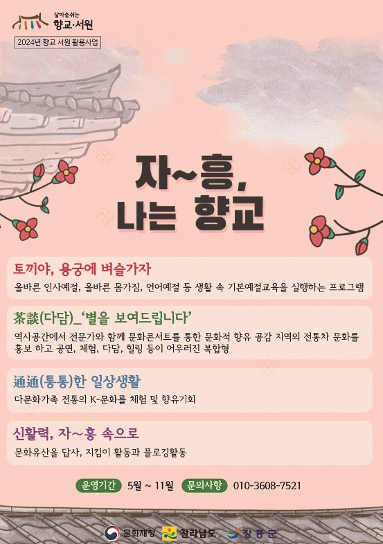 [¹Ìµð¾îÀü³² Á¦°¥´ëÁ¾ ±âÀÚ]ÀåÈﱺÀº ¹®ÈÀçû¿¡¼ °ø¸ð 2024³â Áö¿ª¹®ÈÀ¯»ê Ȱ¿ë»ç¾÷ÀÇ ÀÏȯÀÎ Çâ±³¡¤¼¿ø ¹®ÈÀ¯»ê Ȱ¿ë»ç¾÷¿¡ ¡®ÀÚ¡Èï, ³ª´Â Çâ±³¡¯°¡ ¼±Á¤µÆ´Ù°í ¹àÇû´Ù. Çâ±³¡¤¼¿ø ¹®ÈÀ¯»ê Ȱ¿ë»ç¾÷Àº Çâ±³¡¤¼¿ø¿¡ ´ã±ä Á¤½Å¹®¡¦