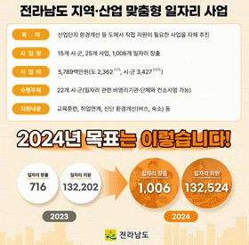 [¹Ìµð¾îÀü³² Á¦°¥´ëÁ¾ ±âÀÚ]Àü¶ó³²µµ´Â ÀÌ´ÞºÎÅÍ ½Ã±ºº° »ê¾÷ Ư¼º¿¡ ¸Â´Â ÀÏÀÚ¸®»ç¾÷ Ȱ¼ºÈ¿Í °í¿ë±âȸ È®´ë¸¦ Áö¿øÇÏ´Â ¡®2024³â µµ °ø¸ð Áö¿ª¡¤»ê¾÷ ¸ÂÃãÇü ÀÏÀÚ¸® âÃâ Áö¿ø»ç¾÷¡¯À» ÃßÁøÇÑ´Ù°í ¹àÇû´Ù. Àü³²µµ´Â Áö³ 1~2¿ù ½Ã±ºÀ»¡¦