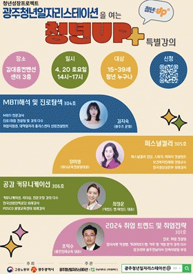 [¹Ìµð¾îÀü³² Á¦°¥´ëÁ¾ ±âÀÚ]±¤ÁÖ±¤¿ª½Ã´Â ±¸Á÷¿¡ ¾î·Á¿òÀ» °Þ´Â û³âµéÀÌ ÀÚ±â ÀÌÇØ¸¦ ÅëÇØ Ãë¾÷ Àü·«À» ¼³°èÇÒ ¼ö ÀÖµµ·Ï ¡®Ã»³â ¾÷(UP)+¡¯ Ư°À» ¿À´Â 20ÀÏ ¿ÀÈÄ 2½Ã ±è´ëÁßÄÁº¥¼Ç¼¾ÅÍ¿¡¼ ¿¬´Ù. ¡®Ã»³âUP+¡¯ Ư°Àº 15¼¼ºÎÅÍ 39¼¼ û¡¦