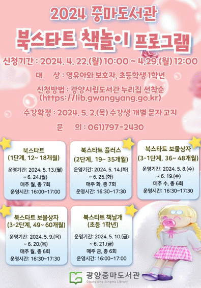 [¹Ìµð¾îÀü³² ÀÓ¼º¿Ï ±âÀÚ]±¤¾çÁ߸¶µµ¼°üÀº µ¶¼È¸¿øÀ» ´ë»óÀ¸·Î ºÏ½ºÅ¸Æ® Ã¥³îÀÌ ÇÁ·Î±×·¥ ¼ö°»ýÀ» ¸ðÁýÇÑ´Ù. ºÏ½ºÅ¸Æ®(Bookstart)´Â ¡®Ã¥°ú ÇÔ²² ÀλýÀ» ½ÃÀÛÇÏÀÚ¡¯¶ó´Â ÃëÁö·Î ºÏ½ºÅ¸Æ®ÄÚ¸®¾Æ¿Í Áö¹æÀÚÄ¡´Üü°¡ ÇÔ²² ÆîÄ¡´Â Áö¿ª»çȸ¡¦