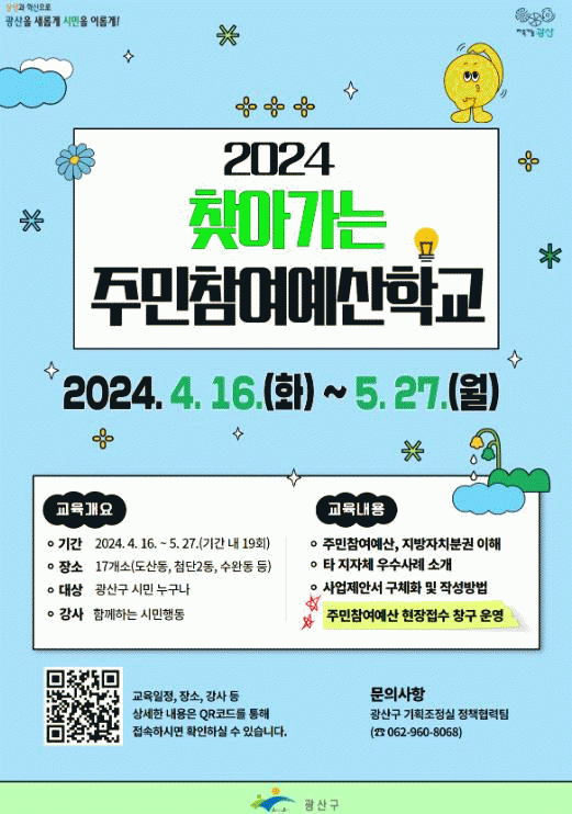 [¹Ìµð¾îÀü³² ±èÁ¤¿ì ±âÀÚ]±¤ÁÖ ±¤»ê±¸´Â ÁÖ¹ÎÂü¿©¿¹»êÁ¦¿¡ ´ëÇÑ ½Ã¹ÎÀÇ ÀÌÇØ¿Í Âü¿©¸¦ ³ôÀ̱â À§ÇØ ¼ö¿äÀÚ Áß½ÉÀÇ ¡®Ã£¾Æ°¡´Â ÁÖ¹ÎÂü¿©¿¹»êÇб³¡¯¸¦ ¿î¿µÇÑ´Ù°í ¹àÇû´Ù. ±¤»ê±¸´Â Áö³ÇغÎÅÍ ÁÖ¹ÎÂü¿©¿¹»êÇб³¸¦ Á÷Á¢ ÇöÀåÀ¸·Î ã¾Æ°¡´Â¡¦