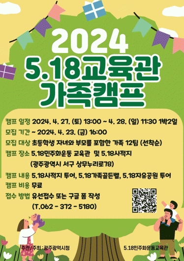[¹Ìµð¾îÀü³² Á¦°¥´ëÁ¾ ±âÀÚ]±¤ÁÖ±¤¿ª½Ã5¡¤18¹ÎÁÖȿ±³À°°üÀº ±¤ÁÖ¡¤Àü³²Áö¿ª ÃʵîÇлý Àڳฦ µÐ °¡Á·À» ´ë»óÀ¸·Î ¿À´Â 27ÀÏ,28ÀÏ 5¡¤18°¡Á·Ä·ÇÁ¸¦ ¿î¿µÇÑ´Ù. 5¡¤18°¡Á·Ä·ÇÁ´Â 1¹Ú2ÀÏ µ¿¾È 5¡¤18ÀÚÀ¯°ø¿ø µî »çÀûÁö¸¦ Åõ¾îÇϰí, ¹æ ¡¦