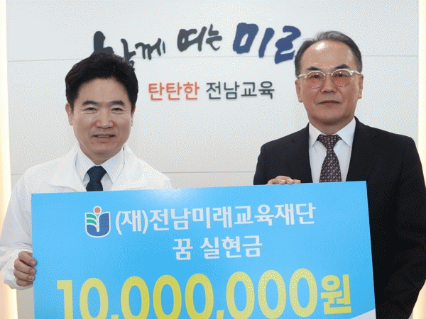 [¹Ìµð¾îÀü³² Á¦°¥´ëÁ¾ ±âÀÚ]¹èµ¿¹® ¢ßº¸¼º ´ëÇ¥°¡ 9ÀÏ Àü³²¹Ì·¡±³À°Àç´Ü¿¡ ²Þ ½ÇÇö±Ý 1,000¸¸¿øÀ» ±âºÎÇß´Ù. ²Þ ½ÇÇö±ÝÀº ÀÏȸ¼º ÀåÇбÝÀÌ ¾Æ´Ñ, ÇлýµéÀÌ ÀÚ½ÅÀÇ ²ÞÀ» ¼³°èÇϰí ÀÚ±âÁÖµµÀûÀ¸·Î ÀåÇбÝÀ» »ç¿ëÇϵµ·Ï Áö¿øÇÏ´Â Àü³²Çü ÀΡ¦