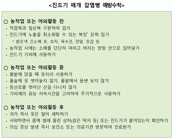 [¹Ìµð¾îÀü³² ÀÓ¼º¿Ï ±âÀÚ]±¤¾ç½Ã´Â º»°ÝÀûÀÎ ³ó¹ø±â¿Í ¾ß¿ÜȰµ¿ÀÌ ¸¹¾ÆÁö´Â º½Ã¶¿¡ Áøµå±â ¸Å°³ °¨¿°º´À» ÁÖÀÇÇØ ´Þ¶ó°í ´çºÎÇß´Ù. Áøµå±â ¸Å°³ °¨¿°º´ÀÎ ÁßÁõ¿¼ºÇ÷¼ÒÆÇ°¨¼ÒÁõÈıº(SFTS)Àº ³óÀÛ¾÷°ú Àӻ깰 äÃë, µî»ê µî ¾ß¿ÜȰµ¿ Áõ°¡¡¦