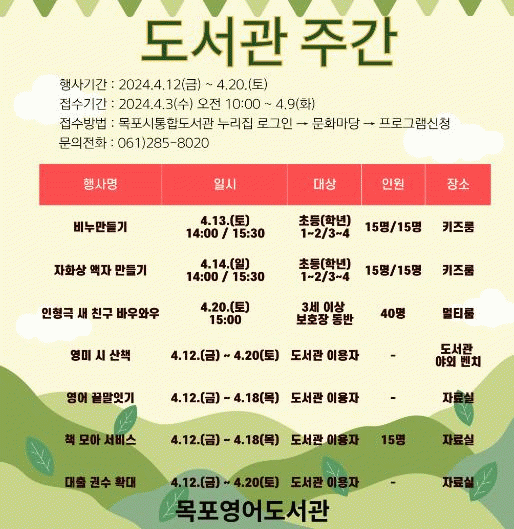 [¹Ìµð¾îÀü³² °í±Ô¼® ±âÀÚ]¸ñÆ÷¿µ¾îµµ¼°üÀÌ ¿À´Â 12ÀϺÎÅÍ 20ÀϱîÁö µµ¼°ü ÁÖ°£Çà»ç ±â°£ µ¿¾È ¡°µµ¼°ü, ´ç½ÅÀÇ ³»ÀÏÀ» ¼ÒÀåÁßÀÔ´Ï´Ù¡±¸¦ ÁÖÁ¦·Î ¸ñÆ÷½Ã¹Î°ú Áö¿ªÁÖ¹ÎÀ» ´ë»óÀ¸·Î µ¶¼¹®È Çà»ç¸¦ ¿î¿µÇÑ´Ù. ¿ÃÇØ·Î 60ȸ¸¦ ¸Â´Â µµ¼¡¦