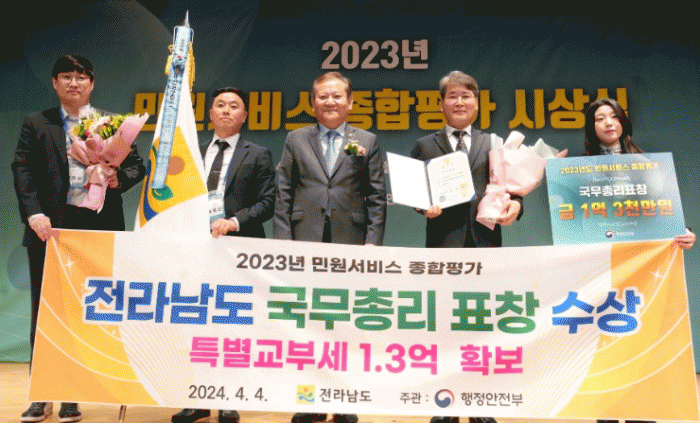[¹Ìµð¾îÀü³² Á¦°¥´ëÁ¾ ±âÀÚ]Àü¶ó³²µµ´Â ÇàÁ¤¾ÈÀüºÎ¿Í ±¹¹Î±ÇÀÍÀ§¿øÈ¸°¡ Àü±¹ 306°³ ÁöÀÚü¸¦ ´ë»óÀ¸·Î ½Ç½ÃÇÑ 2023³â ¹Î¿ø¼ºñ½º Á¾ÇÕÆò°¡¿¡¼ ÃÑÁ¡ 93Á¡(Àü±¹ Æò±Õ 85.93Á¡)À¸·Î 1À§¸¦ Â÷Áö, ±¹¹«ÃѸ® ±â°üǥâ(°¡ µî±Þ)À» ¼ö»óÇß´Ù°í ¹à¡¦