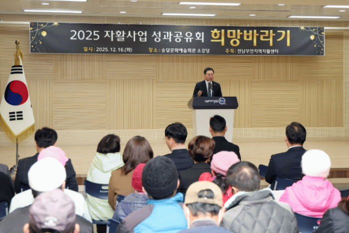[¹Ìµð¾îÀü³² ±èÆÇ±¹ ±âÀÚ]Àü³² ¹«¾È±ºÀº ¹«¾ÈÁö¿ªÀÚȰ¼¾ÅÍ 2025³â ¼º°ú°øÀ¯È¸¸¦ Áö³ 12¿ù 16ÀÏ ½Â´Þ¹®¿¹È¸°ü ¼Ò°´ç¿¡¼ °³ÃÖÇßÀ¸¸ç, À̳¯ ¹«¾ÈÁö¿ªÀÚȰ¼¾ÅÍ Á¾»çÀÚ, ÀÚȰ±Ù·Î»ç¾÷ Âü¿©ÀÚ, Áö¿ªÁֹΠµî 100¿© ¸íÀÌ ¸ð¿© ¼ÒÅëÀÇ ÀåÀ» ¿¾ú¡¦