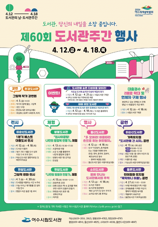 [¹Ìµð¾îÀü³² ÀüÇü¼º ±âÀÚ]¿©¼ö½Ã°¡ ¿À´Â 12ÀϺÎÅÍ 18ÀϱîÁö ¡®Á¦60ȸ µµ¼°üÁÖ°£ Çà»ç¡¯¸¦ °³ÃÖÇÑ´Ù. À̹ø Çà»ç´Â ¡®µµ¼°ü, ´ç½ÅÀÇ ³»ÀÏÀ» ¼ÒÀå ÁßÀÔ´Ï´Ù¡¯¶ó´Â ÁÖÁ¦·Î ¿©¼ö½Ã¸³µµ¼°ü 7°³°ü(À̼ø½Å¡¤½ÖºÀ¡¤Çö¾Ï¡¤È¯°æ¡¤µ¹»ê¡¤¼Ò¶ó¡¤À²¡¦