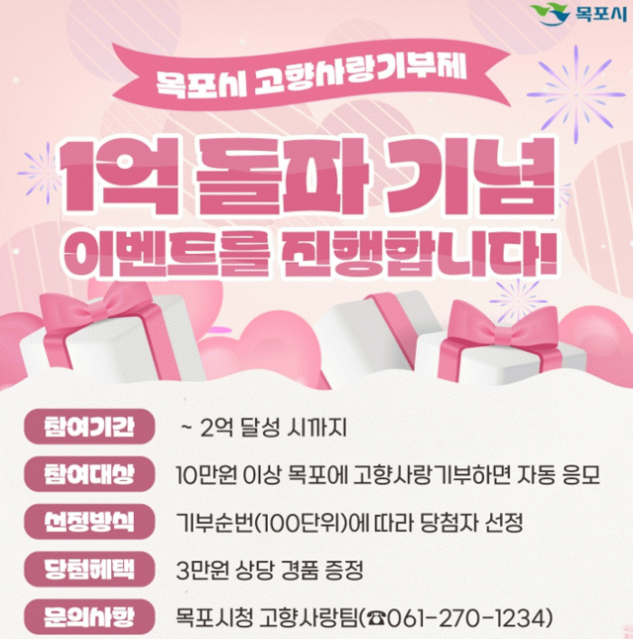 [¹Ìµð¾îÀü³² °í±Ô¼® ±âÀÚ]¸ñÆ÷½Ã°¡ ±Ý³âµµ 81Àϸ¸¿¡ °íÇâ»ç¶û±âºÎ±Ý 1¾ï µ¹ÆÄ¸¦ ±â³äÇϸç Âü¿© À̺¥Æ®¸¦ ÃßÁøÇÑ´Ù À̹ø ÁøÇàµÇ´Â À̺¥Æ®´Â °íÇâ»ç¶û±âºÎÁ¦ÀÇ È°¼ºÈ¸¦ ¸ñÇ¥·Î ¿¹ºñ±âºÎÀÚÀÇ Èï¹Ì¸¦ À¯¹ßÇÏ°í ±âºÎ Âü¿©ÀÇ º¸¶÷°ú Ãß°¡ °æ¡¦