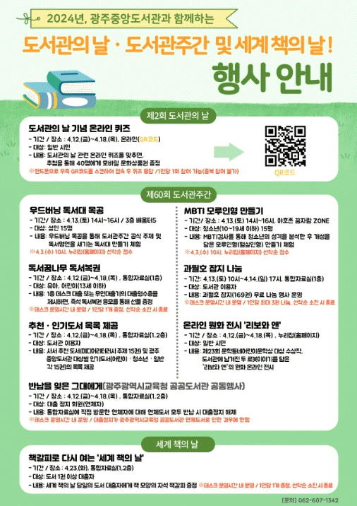 [¹Ìµð¾îÀü³² Á¦°¥´ëÁ¾ ±âÀÚ]±¤ÁÖ±¤¿ª½Ã±³À°Ã» ±¤ÁÖÁß¾Óµµ¼°üÀº µµ¼°üÀÇ ³¯¤ýµµ¼°ü ÁÖ°£ ¹× ¼¼°è Ã¥ÀÇ ³¯À» ¸ÂÀÌÇÏ¿©, ¡®µµ¼°ü, ´ç½ÅÀÇ ³»ÀÏÀ» ¼ÒÀåÁßÀÔ´Ï´Ù¡¯¸¦ ÁÖÁ¦·Î ¿À´Â 12ÀϺÎÅÍ 23ÀϱîÁö ´Ùä·Î¿î Çà»ç¸¦ ¿î¿µÇÑ´Ù. ±¤ÁÖÁß¾Óµµ¡¦