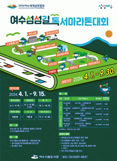 [¹Ìµð¾îÀü³² ÀüÇü¼º ±âÀÚ]¿©¼ö½Ã°¡ Ã¥ Àд ¹®ÈÁ¶¼ºÀ» À§ÇØ 4¿ù 1ÀϺÎÅÍ 9¿ù 30ÀϱîÁö 6°³¿ù°£ ¡®Á¦10ȸ ¿©¼öµ¶¼¸¶¶óÅæ´ëȸ¡¯¸¦ °³ÃÖÇÑ´Ù. ¡®µ¶¼¸¶¶óÅæ´ëȸ¡¯´Â Ã¥ 1ÂÊÀ» ¸¶¶óÅæ 1m·Î ȯ»êÇØ ÄÚ½º¸¦ ¿ÏÁÖÇϴ å Àб⠰æÁÖ´Ù. ƯÈ÷ ¡¦