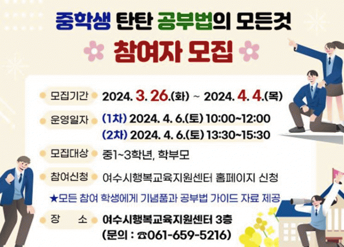 [¹Ìµð¾îÀü³² ÀüÇü¼º ±âÀÚ]¿©¼ö½Ã°¡ ¿À´Â 4¿ù 6ÀÏ Åä¿äÀÏ ¿©¼ö½ÃÇູ±³À°Áö¿ø¼¾ÅÍ¿¡¼ °ü³» ÀçÇÐ ÁßÀÎ ÁßÇлýÀ» ´ë»óÀ¸·Î ¡®ÅºÅº °øºÎ¹ýÀÇ ¸ðµç °Í¡¯ Ư°À» °³ÃÖÇÑ´Ù. À̹ø °ÀÇ´Â À¯Æ©ºê¿Í SNS µî¿¡¼ ¡®°õ½Ü±³½Ç¡¯·Î Å« Àα⸦ ¾ò°í ÀÖ¡¦