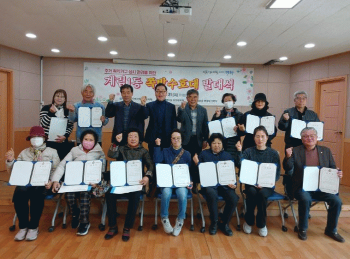 [¹Ìµð¾îÀü³² ±èÁ¤¿ì ±âÀÚ]±¤ÁÖ µ¿±¸ °è¸²1µ¿Àº ÁÖ°Å Ãë¾à À§±â°¡±¸ ¹ß±¼°ú »ó½Ã °ü¸® Áö¿ø ü°è ±¸ÃàÀ» À§ÇÑ ¡®°è¸²1µ¿ ÂÊ¹æ ¼öÈ£´ë¡¯ ¹ß´ë½ÄÀ» ÁøÇàÇß´Ù°í ¹àÇû´Ù. ¡®°è¸²1µ¿ ÂÊ¹æ ¼öÈ£´ë¡¯´Â ÂʹæÀ» ¿î¿µÇÏ´Â ¿©Àμ÷°ú ¸ðÅÚ »ç¾÷ÁÖµé·Î¡¦