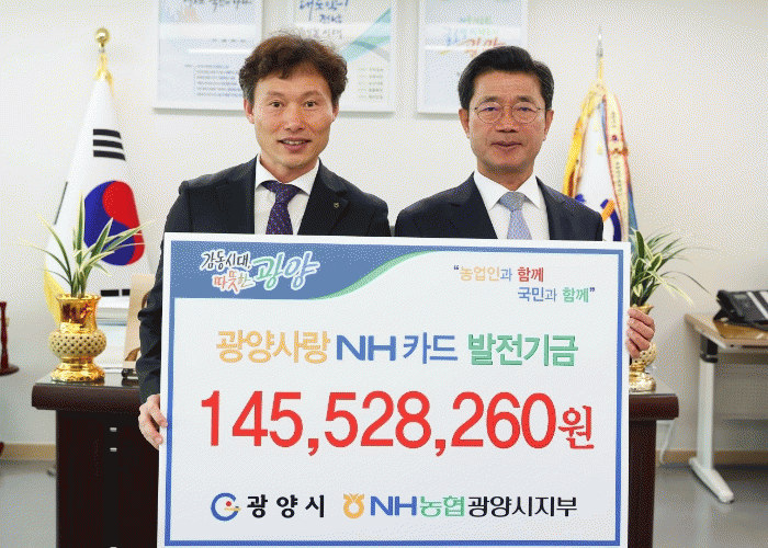 [¹Ìµð¾îÀü³² ÀÓ¼º¿Ï ±âÀÚ]±¤¾ç½Ã´Â 18ÀÏ ½ÃÀå½Ç¿¡¼ NH³óÇùÀºÇà ±¤¾ç½ÃÁöºÎ À念Á¶ ÁöºÎÀå µîÀÌ Âü¼®ÇÑ °¡¿îµ¥ Áö³ÇØ Á¦ÈÞÄ«µå ±â±Ý ÃÑ 1¾ï4õ5¹é52¸¸ ¿øÀ» Àü´ÞÇß´Ù°í ¹àÇû´Ù. Àü´ÞµÈ ±â±ÝÀº Áö³ ÇÑ ÇØ µ¿¾È Àû¸³µÈ ±â±ÝÀ¸·Î ±¤¾ç½Ãû¡¦