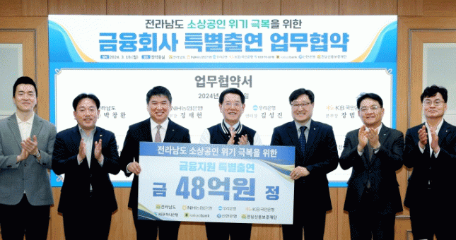 [¹Ìµð¾îÀü³² Á¦°¥´ëÁ¾ ±âÀÚ]Àü¶ó³²µµ´Â ¼Ò»ó°øÀÎ ±ÝÀ¶Áö¿øÀ» ÅëÇÑ °æ¿µÀ§±â ±Øº¹À» À§ÇØ 18ÀÏ µµÃ»¿¡¼ Àü³²½Å¿ëº¸ÁõÀç´Ü, ³óÇù¡¤¿ì¸®¡¤±¹¹Î¡¤Çϳª¡¤½ÅÇÑ¡¤Ä«Ä«¿À¹ðÅ© 6°³ ±ÝÀ¶È¸»ç¿Í 48¾ï ¿ø Ưº°Ã⿬ Çù¾àÀ» Çß´Ù. À̷νá ÃÑ Ã⿬±ÝÀº ¡¦