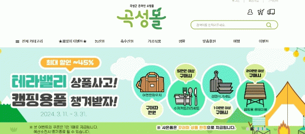 [¹Ìµð¾îÀü³² Á¦°¥´ëÁ¾ ±âÀÚ]°î¼º±ºÀÌ ¿À´Â 31ÀϱîÁö ¿Â¶óÀÎ ¼îÇθô ¡®°î¼º¸ô¡¯¿¡¼ ¡®Å×¶ó¹ë¸® »óǰ »ç°í Ä·Çοëǰ ì°Ü ¹ÞÀÚ!¡¯±âȹÀüÀ» ÁøÇàÇÑ´Ù. ¡®Å×¶ó¹ë¸®¡¯¶õ °î¼º±º ³óÃ̽ÅȰ·ÂÇ÷¯½º »ç¾÷À¸·Î °î¼º¿¡¼ »ý»ê¡¤°¡°øµÇ´Â µðÅ彺 ¡¦
