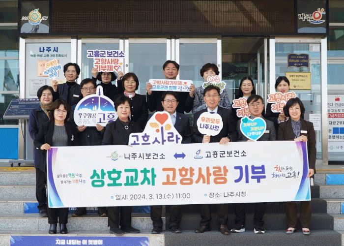 [¹Ìµð¾îÀü³² Á¦°¥´ëÁ¾ ±âÀÚ]°íÈﱺ º¸°Ç¼Ò´Â 13ÀÏ ³ªÁÖ½Ãû¿¡¼ ³ªÁֽà º¸°Ç¼Ò¿Í °íÇâ»ç¶û±âºÎÁ¦ÀÇ ¼º°øÀûÀÎ Á¤Âø°ú ±âºÎ¹®È È®»êÀ» À§ÇØ »óÈ£±âºÎ¸¦ ÃßÁøÇß´Ù°í ¹àÇû´Ù. À̹ø ±³Â÷ ±âºÎ´Â °íÈﱺ°ú ³ªÁֽà º¸°Ç¼Ò Á÷¿ø 52¸íÀÌ °íÇâ»ç¶û¡¦