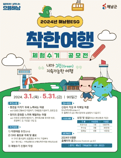 [¹Ìµð¾îÀü³² Á¦°¥´ëÁ¾ ±âÀÚ]ÇØ³²±ºÀÌ È¯°æÀ» »ý°¢ÇÏ´Â Áö¼Ó°¡´ÉÇÑ ¿©Çà, ÂøÇÑ¿©ÇàÀÇ ±º¹Î È®»ê¿¡ ³ª¼±´Ù. ±ºÀº ±º¹ÎµéÀÌ Áö¿ªÀ» ¿©ÇàÇÒ ¶§ ȯ°æ°ú Áö¼Ó°¡´ÉÇÑ »çȸ°¡Ä¡¸¦ ÁöŰ´Â¡®ÂøÇÑ¿©Ç࡯À» ÅëÇØ ÇØ³²ÇüESG¸¦ ½ÇõÇÏ´Â °è±â¸¦ ¸¶·ÃÇÏ¡¦