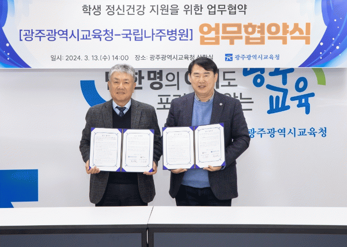 [¹Ìµð¾îÀü³² Á¦°¥´ëÁ¾ ±âÀÚ]±¤Áֽñ³À°Ã»ÀÌ 13ÀÏ ±¹¸³³ªÁÖº´¿ø°ú Á¤½Å°Ç° À§±â ÇлýÀÇ °Ç°ÇÑ ¼ºÀåÀ» µ½´Â ¾÷¹«Çù¾àÀ» ü°áÇß´Ù. ½Ã±³À°Ã»¿¡ µû¸£¸é À̹ø Çù¾àÀº Á¤½Å°Ç°¿¡ ¾î·Á¿òÀ» °Þ°í ÀÖ´Â À§±â ÇлýÀ» À§ÇÑ ´Ù¾çÇÑ ¸ÂÃãÇü ÇÁ·Î±×¡¦