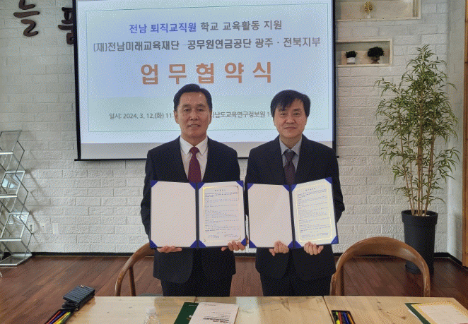 [¹Ìµð¾îÀü³² Á¦°¥´ëÁ¾ ±âÀÚ]Àü³²¹Ì·¡±³À°Àç´Ü°ú °ø¹«¿ø¿¬±Ý°ø´Ü ±¤ÁÖ¡¤ÀüºÏ ÁöºÎ°¡ 12ÀÏ Àü³²±³À°Ã»±³À°¿¬±¸Á¤º¸¿ø¿¡¼ ¾÷¹«Çù¾àÀ» ¸Î°í, ÅðÁ÷ ±³Á÷¿øµéÀÇ Çб³±³À°Áö¿ø Ȱ¼ºÈ¿¡ ³ª¼¹´Ù. À̹ø Çù¾àÀº ÅðÁ÷ ±³Á÷¿øµéÀÇ ÀÎÀû ÀÚ¿ø Ȱ¿ë°ú¡¦