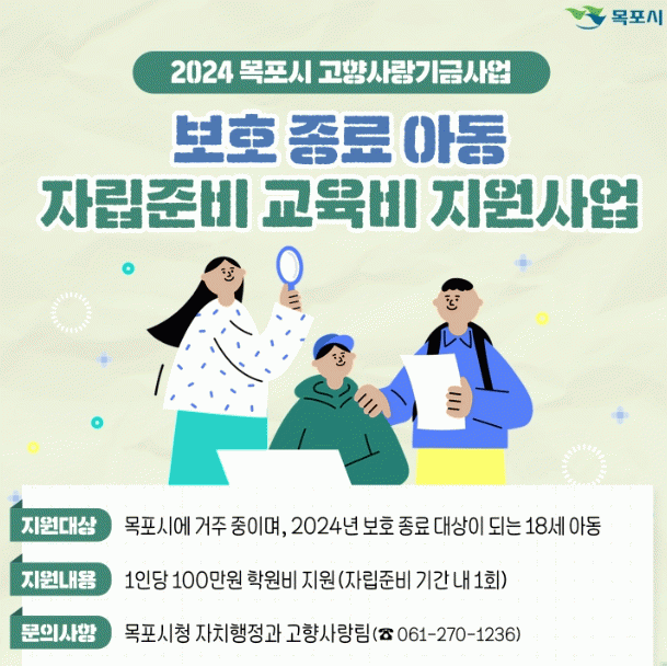 [¹Ìµð¾îÀü³² °í±Ô¼® ±âÀÚ]¸ñÆ÷½Ã°¡ º¸È£Á¾·á¾Æµ¿ ÀÚ¸³Áغñ ±³À°ºñ Áö¿ø»ç¾÷À» ¸ñÆ÷½Ã °íÇâ»ç¶û±âºÎÁ¦ Á¦1È£ ±â±Ý»ç¾÷À¸·Î ½ÃÇàÇÑ´Ù. ¡®º¸È£Á¾·á¾Æµ¿¡¯À̶õ ¾Æµ¿ ¾çÀ°½Ã¼³, °øµ¿»ýȰ °¡Á¤, °¡Á¤À§Å¹ µîÀÇ º¸È£¸¦ ¹Þ´Ù°¡ 18¼¼ ÀÌÈÄ º¸È£°¡¡¦