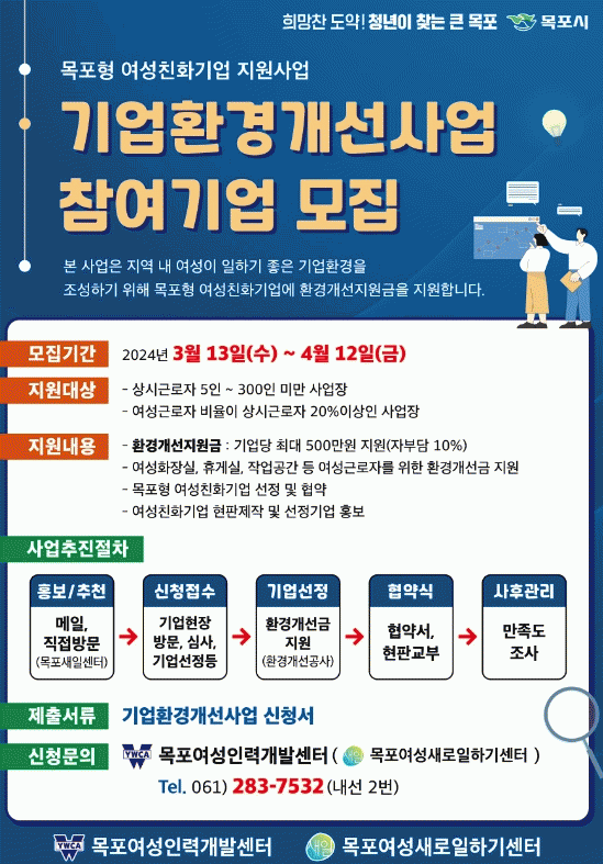 [¹Ìµð¾îÀü³² °í±Ô¼® ±âÀÚ]¸ñÆ÷½Ã´Â ¿©¼º±Ù·ÎÀÚ ºñÀ² 20% ÀÌ»óÀÎ Áß¼Ò ±â¾÷À» ´ë»óÀ¸·Î ¸ñÆ÷Çü ¿©¼ºÄ£È±â¾÷ Áö¿ø»ç¾÷À» ÃßÁøÇÑ´Ù. ½Ã´Â ¿©¼º±Ù·ÎÀÚµéÀÌ ±Ù¹«Çϱâ ÁÁÀº ±â¾÷ȯ°æÀ» Á¶¼ºÇØ °æ·Â´ÜÀýÀ» ¿¹¹æÇϰí, À̸¦ ÅëÇØ ¿©¼º °í¿ë·üÀ» ¡¦