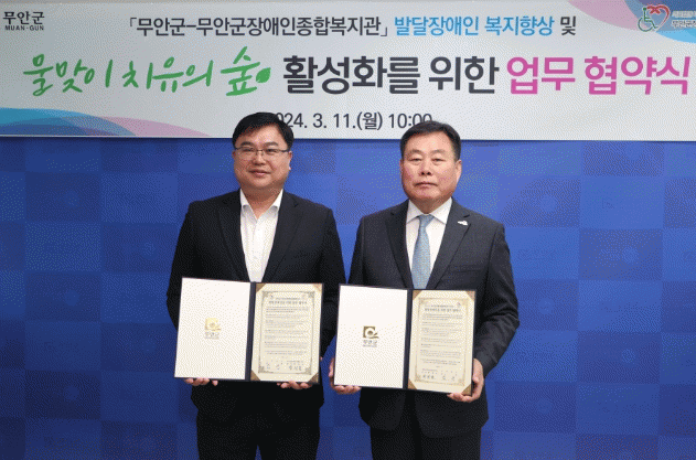 [¹Ìµð¾îÀü³² ±èÆÇ±¹ ±âÀÚ]Àü³² ¹«¾È±ºÀº 11ÀÏ ±º¼ö½Ç¿¡¼ ¹«¾È±ºÀå¾ÖÀÎÁ¾ÇÕº¹Áö°ü°ú ¹ß´ÞÀå¾ÖÀÎÀÇ °Ç°ÁõÁø°ú º¹Áö Çâ»óÀ» À§ÇØ ¹°¸ÂÀÌ Ä¡À¯ÀÇ ½£ Ȱ¿ë ¾÷¹«Çù¾àÀ» ü°áÇß´Ù. À̳¯ Çù¾à½Ä¿¡´Â ±è»ê ±º¼ö, ¹Ú¼º³² ¹«¾È±ºÀå¾ÖÀÎÁ¾ÇÕº¹Áö¡¦