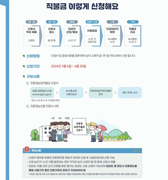 [¹Ìµð¾îÀü³² Á¦°¥´ëÁ¾ ±âÀÚ]Àü¶ó³²µµ´Â ȯ°æº¸Àü µî ³ó¾÷ÀÇ °øÀÍÀû ±â´ÉÀ» ³ôÀ̱â À§ÇØ Áö¿øÇϴ ģȯ°æ³ó¾÷Á÷ºÒ±Ý ½ÅûÀ» ¿À´Â 4¿ù 30ÀϱîÁö ¹Þ´Â´Ù°í ¹àÇû´Ù. ģȯ°æ³ó¾÷Á÷ºÒ±ÝÀº ģȯ°æ³ó»ê¹°(À¯±â¡¤¹«³ó¾à) ÀÎÁõÀ» ¹Þ°í ³óÁö ¼ÒÀçÁö¡¦