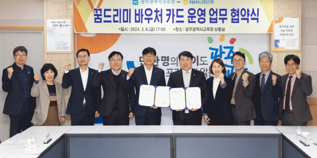 [¹Ìµð¾îÀü³² Á¦°¥´ëÁ¾ ±âÀÚ]±¤Áֽñ³À°Ã»ÀÌ Áö³ 8ÀÏ NH³óÇùÀºÇà°ú Çб³»ýȰ¿¡ ÇÊ¿äÇÑ ±³À°°æºñ Áö¿ø »ç¾÷ÀÎ ¡®²Þµå¸®¹Ì ¹Ù¿ìó Ä«µå¡¯ ¿î¿µÀ» À§ÇÑ ¾÷¹«Çù¾àÀ» ü°áÇß´Ù. 10ÀÏ ½Ã±³À°Ã»¿¡ µû¸£¸é À̹ø Çù¾à¿¡ µû¶ó NH³óÇùÀºÇàÀº 4¿ù 20¡¦
