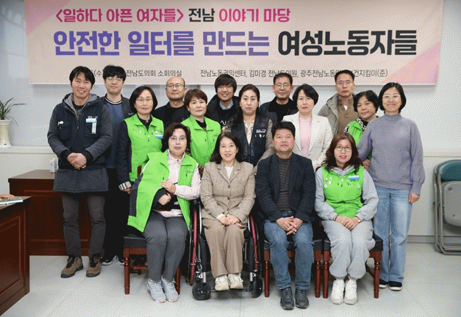 [¹Ìµð¾îÀü³² Á¦°¥´ëÁ¾ ±âÀÚ]Àü³²µµÀÇȸ ±è¹Ì°æ ÀÇ¿ø(³ì»öÁ¤ÀÇ´ç, ºñ·Ê)Àº Áö³ 3¿ù 6ÀÏ Àü³²µµÀÇȸ ¼ÒȸÀǽǿ¡¼ ¿¸° ¡®'ÀÏÇÏ´Ù ¾ÆÇ ¿©ÀÚµé' Àü³² À̾߱⠸¶´ç¡¯¿¡ Âü¼®ÇØ ¿©¼º ³ëµ¿ÀÚµéÀÇ ³ëµ¿È¯°æ¿¡ ´ëÇÑ ¹®Á¦Á¡À» °øÀ¯Çϰí ÇØ°áÃ¥À»¡¦