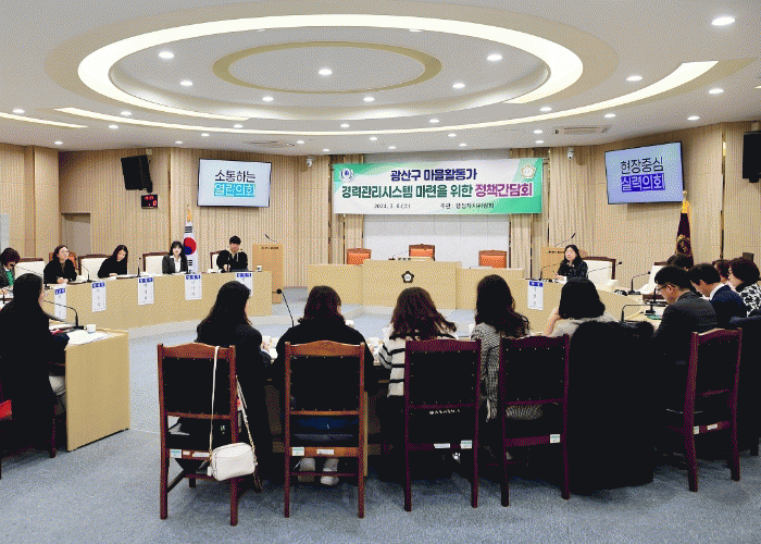 [¹Ìµð¾îÀü³² ±èÁ¤¿ì ±âÀÚ]±¤»ê±¸ÀÇȸ ÇàÁ¤ÀÚÄ¡À§¿øÈ¸°¡ 6ÀÏ ¸¶À»È°µ¿°¡µéÀ» ÃÊûÇÏ¿© ¡®¸¶À»È°µ¿°¡ °æ·Â°ü¸®½Ã½ºÅÛ ¸¶·ÃÀ» À§ÇÑ Á¤Ã¥°£´ãȸ¡¯¸¦ °¡Á³´Ù. À̳¯ °£´ãȸ´Â ÇöÀå¿¡¼ Ȱµ¿ÇÏ´Â ¸¶À»È°µ¿°¡ 20¿© ¸í°ú Áß°£Áö¿øÁ¶Á÷, ±¤»ê±¸ÀÇ¡¦
