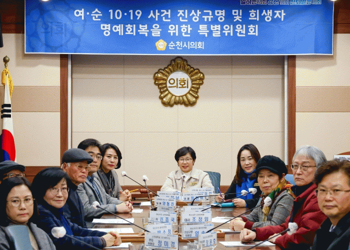 [¹Ìµð¾îÀü³² ÀÓ¼º¿Ï ±âÀÚ]¼øÃµ½ÃÀÇȸ ¿©¼ø 10¡¤19»ç°Ç Áø»ó±Ô¸í ¹× Èñ»ýÀÚ ¸í¿¹È¸º¹À» À§ÇÑ Æ¯º°À§¿øÈ¸´Â Áö³ 4ÀÏ ¿©¼ø»ç°Ç »ç¾÷ÇöȲ °øÀ¯¸¦ À§ÇÑ È¸ÀǸ¦ °³ÃÖÇß´Ù. À̹ø ȸÀÇ¿¡´Â ¿©¼øÇ×Àï ¼øÃµÀ¯Á·È¸¸¦ ºñ·ÔÇÑ ¿©¼ø 10¡¤19 ¹ü±¹¹Î¿¬´ë¡¦