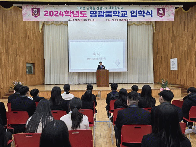 [¹Ìµð¾îÀü³² Á¦°¥´ëÁ¾ ±âÀÚ] Àü¶ó³²µµÀÇȸ ±âȹÇàÁ¤À§¿øÈ¸ ¹Ú¿øÁ¾ ÀÇ¿ø(´õºÒ¾î¹ÎÁÖ´ç, ¿µ±¤1)ÀÌ Áö³ 3¿ù 4ÀÏ ¸ð±³ÀÎ ¿µ±¤±º ¼ÒÀç ¿µ±¤ÁßÇб³ 2024³â ½ÅÀÔ»ý ÀÔÇнĿ¡ Âü¼®ÇÏ¿© ÈĹèµé¿¡°Ô ÃàÇÏ¿Í °Ý·ÁÀÇ ¸»À» ÀüÇß´Ù. ¹Ú¿øÁ¾ ÀÇ¿øÀº¡¦