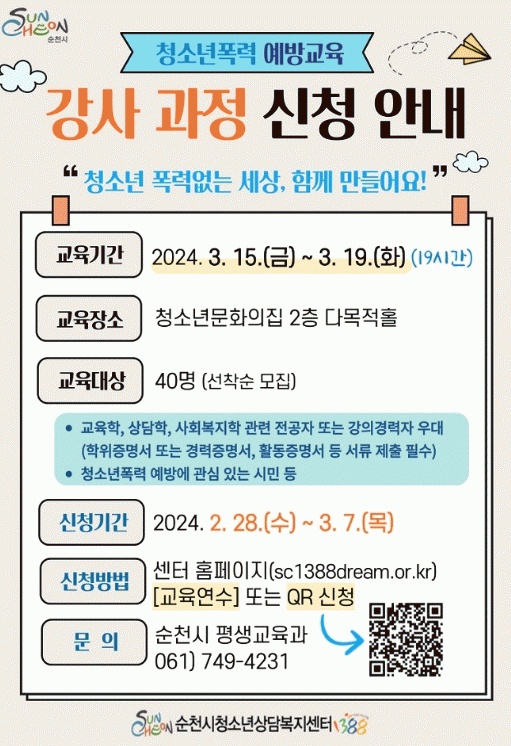 [¹Ìµð¾îÀü³² ÀÓ¼º¿Ï ±âÀÚ]¼øÃµ½Ã´Â û¼Ò³âÀÇ °Ç°ÇÑ ¼ºÀå°ú ÇູÇÑ »ýȰÀ» Á¶·ÂÇϰíÀÚ ¡®2024³â û¼Ò³âÆø·Â ¿¹¹æ±³À° °»ç°úÁ¤¡¯À» ¿À´Â 3¿ù 15ÀϺÎÅÍ 19ÀϱîÁö 3Àϰ£ ÁøÇàÇÑ´Ù°í ¹àÇû´Ù. À̹ø °»ç°úÁ¤Àº ¡âû¼Ò³âÆø·ÂÀÇ °³³ä°ú ½ÇÅ ¡â¡¦