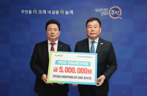 [¹Ìµð¾îÀü³² ±èÆÇ±¹ ±âÀÚ]Àü³² ¹«¾È±ºÀº Áö³ 27ÀÏ (ÁÖ)¿¡½º¿¥Àü·Â¿¡³ÊÁö ÇѼö¹Î ´ëÇ¥°¡ °íÇâ»ç¶û±âºÎ±Ý 500¸¸ ¿øÀ» ±âŹÇß´Ù°í ¹àÇû´Ù. ¢ß¿¡½º¿¥Àü·Â¿¡³ÊÁö´Â ģȯ°æ¿¡³ÊÁö ÀÎÇã°¡, ¼³°è, ±¸Á¶¹° Á¦ÀÛ ¹× ¼³Ä¡±îÁö ¿ø½ºÅé ¼Ö·ç¼ÇÀ» Á¦°ø¡¦