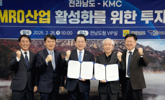 [¹Ìµð¾îÀü³² Á¦°¥´ëÁ¾ ±âÀÚ]Àü¶ó³²µµ´Â 26ÀÏ µµÃ» Á¢°ß½Ç¿¡¼ ¹Ì±¹ ȹ°±â °³Á¶(P2F) Àü¹®±â¾÷ÀÎ KMC¿Í 3õ480¾ï ¿ø ±Ô¸ðÀÇ Ç×°øÁ¤ºñ(MRO) ÅõÀÚÇù¾àÀ» ÇØ ¹«¾È±¹Á¦°øÇ×À» ±Û·Î¹ú Ç×°ø¹°·ù °ÅÁ¡À¸·Î À°¼ºÇÏ´Â ±â¹ÝÀ» ¸¶·ÃÇß´Ù°í ¹àÇû´Ù. ¡¦