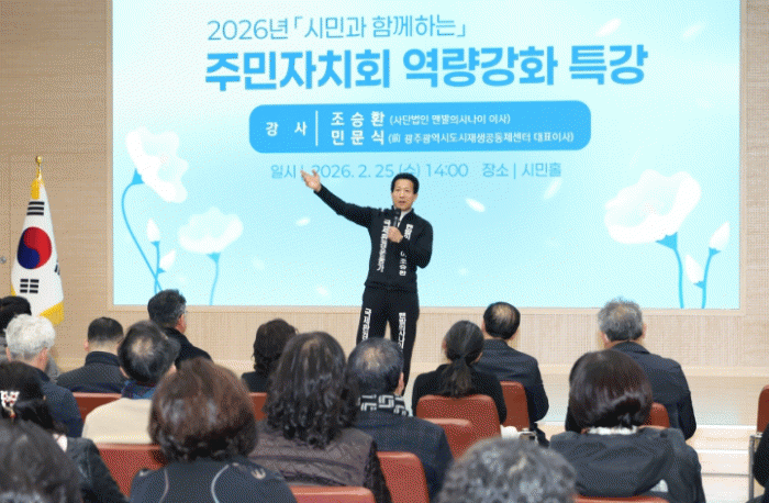 [¹Ìµð¾îÀü³² ÀÓ¼º¿Ï ±âÀÚ]±¤¾ç½Ã´Â Áö³ 25ÀÏ ¿ÀÈÄ 2½Ã ½Ãû ½Ã¹ÎȦ¿¡¼ À¾¡¤¸é¡¤µ¿ ÁÖ¹ÎÀÚġȸ À§¿ø°ú ÁÖ¹ÎÀÚÄ¡¿¡ °ü½É ÀÖ´Â ½Ã¹Î µî 150¿© ¸íÀÌ Âü¼®ÇÑ °¡¿îµ¥ ¡®2026³â ÁÖ¹ÎÀÚġȸ ¿ª·®°È ±³À°¡¯À» ½Ç½ÃÇß´Ù. À̹ø ±³À°Àº ÁÖ¹ÎÀÌ Áö¡¦