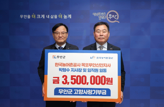 [¹Ìµð¾îÀü³² ±èÆÇ±¹ ±âÀÚ]Àü³² ¹«¾È±ºÀº Áö³ 22ÀÏ Çѱ¹³ó¾îÃ̰ø»ç ¸ñÆ÷¹«¾È½Å¾ÈÁö»ç(Áö»çÀå ¹ÚÇü¼ö) ÀÓÁ÷¿øµéÀÌ ¹«¾È±º °íÇâ»ç¶û±âºÎÁ¦ÀÇ È°¼ºÈ¿Í Áö¿ª¹ßÀüÀ» ÀÀ¿øÇÏ¸ç °íÇâ»ç¶û±âºÎ±Ý 350¸¸ ¿øÀ» ±âŹÇß´Ù°í ¹àÇû´Ù. Çѱ¹³ó¾îÃ̰ø»ç ¡¦