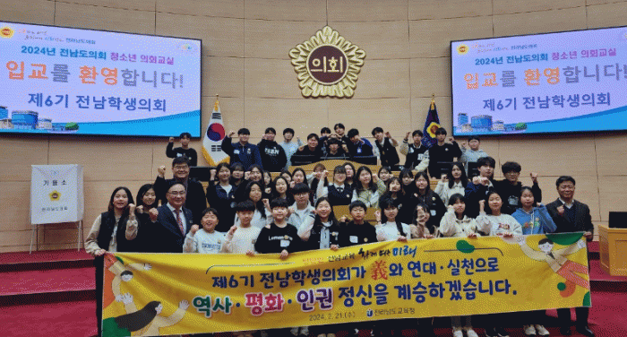 [¹Ìµð¾îÀü³² °í±Ô¼® ±âÀÚ]Àü¶ó³²µµ±³À°Ã»Àº 2024Çг⵵ Áö¿ªÇлý¿¬ÇÕȸ ÃÊ,¡¤Áß¡¤°í Çлý´ëÇ¥·Î, Áö¿ªÃ» ±³À°Àå ÃßõÀ» ¹ÞÀº 66¸íÀÇ Àü³²ÇлýÀÇ¿øÀÌ ²Ù·ÁÁ® Ȱµ¿À» ½ÃÀÛÇÑ´Ù°í 22ÀÏ ¹àÇû´Ù. Á¦6±â Àü³²ÇлýÀÇ¿øÀº 2ȸ Àü±¹ ÇлýÀÇÀå´Ü ¡¦
