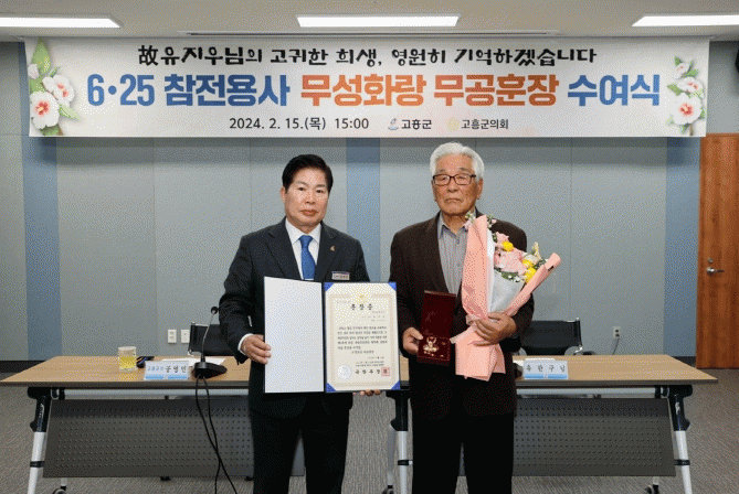 [¹Ìµð¾îÀü³² Á¦°¥´ëÁ¾ ±âÀÚ]°íÈﱺÀº Áö³ 15ÀÏ ±ºÃ» ÆÈ¿µ»êȦ¿¡¼ 6¡¤25 ÂüÀü¿ë»çÀΠͺ À¯Áö¿ì »óº´ÀÇ ¹«¼ºÈ¶û ¹«°øÈÆÀå°ú ÈÆÀåÁõÀ» À¯°¡Á·¿¡°Ô Àü¼öÇß´Ù°í ¹àÇû´Ù. ¹«¼ºÈ¶û ¹«°øÈÆÀåÀº ´ëÇѹα¹ 4¹øÂ° ¹«°øÈÆÀåÀ¸·Î¼ Àü½Ã ¶Ç´Â ÀÌ¿¡¡¦