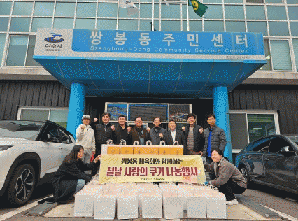 [¹Ìµð¾îÀü³² ÀüÇü¼º ±âÀÚ]¿©¼ö½Ã ½ÖºÀµ¿ üÀ°È¸´Â ¼³ ¸íÀýÀ» ¸Â¾Æ Áö³ 6ÀÏ ½ÖºÀµ¿ °ü³» Àú¼ÒµæÃþ 2¼¼´ë¿¡ ¼±¹°¼¼Æ®(50¸¸ ¿ø »ó´ç)¿Í Áö¿ª¾Æµ¿µ¿¼¾ÅÍ 3°³¼Ò¿¡ ÄíŰ 120°³¸¦(160¸¸ ¿ø »ó´ç)¸¦ Àü´ÞÇß´Ù. üÀ°È¸ ¹ÚÁ¾¿ ȸÀåÀº ¡°Ãß¿î °Ü¡¦