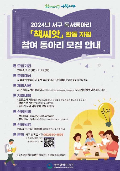 [¹Ìµð¾îÀü³² ±èÁ¤¿ì ±âÀÚ]±¤ÁÖ±¤¿ª½Ã ¼±¸´Â ¿À´Â 22ÀϱîÁö µ¶¼ »ýȰÀÇ ±â¹ÝÀÌ µÇ´Â ¼±¸ µ¶¼µ¿¾Æ¸®¡®Ã¥¾¾¾Ñ¡¯¿¡ Âü¿©ÇÒ 50°³ ÆÀÀ» ¸ðÁýÇÑ´Ù. À̹ø »ç¾÷Àº ½Ã¹ÎµéÀÇ ÀÚ¹ßÀû µ¶¼È°µ¿ Áö¿øÀ» ÅëÇØ Áö¿ª »çȸÀÇ Åä·Ð¹®È È®»ê ¹× µ¶¼ »ý¡¦