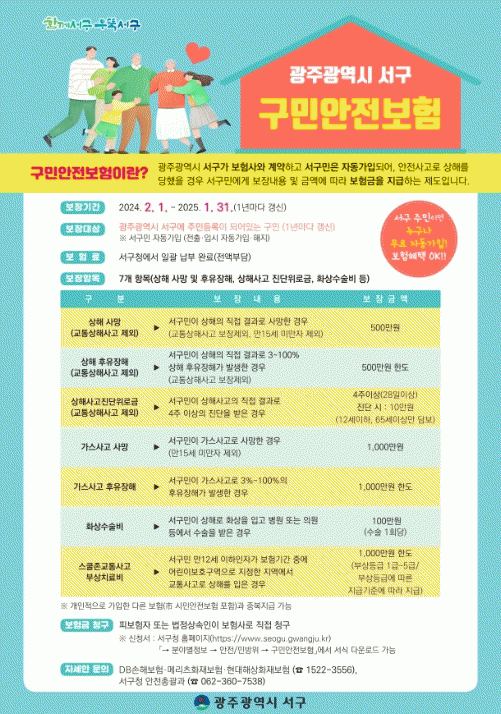 [¹Ìµð¾îÀü³² ±èÁ¤¿ì ±âÀÚ]±¤ÁÖ±¤¿ª½Ã ¼±¸°¡ ÀÏ»ó»ýȰ Áß Àç³À̳ª »ç°í·Î ÇÇÇØ¸¦ º» ±¸¹Î¿¡°Ô ÃÖ´ë 1000¸¸¿ø±îÁö Áö¿øÇÏ´Â ¡®¼±¸ ±¸¹Î¾ÈÀüº¸Ç衯À» ¿î¿µÇÑ´Ù. ¿ÃÇØ´Â ¡®»óÇØ»ç°í Áø´ÜÀ§·Î±Ý(±³Åë»óÇØ»ç°í Á¦¿Ü)¡¯ Ç׸ñÀ» Ãß°¡ÇØ ±¸¹Îµé¡¦