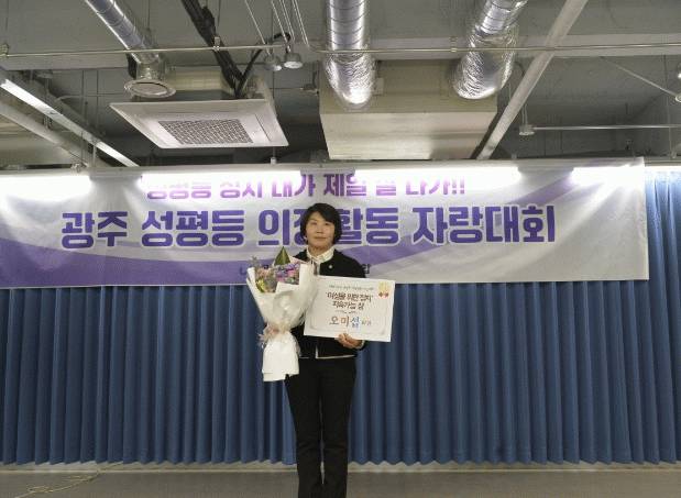 [¹Ìµð¾îÀü³² ±èÁ¤¿ì ±âÀÚ]±¤ÁÖ±¤¿ª½Ã ¼±¸ÀÇȸ ´õºÒ¾î¹ÎÁÖ´ç ¿À¹Ì¼· ÀÇ¿øÀº 6ÀÏ ±¤ÁÖÀü³²¿©¼º´Üü¿¬ÇÕ¿¡¼ ÁÖÃÖÇÑ Á¦1ȸ ±¤ÁÖ ¿©¼ºÀÇ¿ø ¼ºÆòµî ÀÇÁ¤È°µ¿ ÀÚ¶û´ëȸ¿¡¼ ¡°¿©¼ºÀ» À§ÇÑ Á¤Ä¡ Áö¼Ó°¡´É»ó¡±À» ¼ö»óÇß´Ù. ±¤ÁÖÀü³²¿©¼º´Üü¿¬¡¦