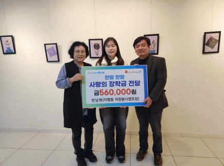 [¹Ìµð¾îÀü³² ±èÁ¤¿ì ±âÀÚ]±¤ÁÖ±¤¿ª½Ã ¼±¸ Ä¡Æòµ¿ ÀÚ¿øºÀ»çÄ·ÇÁÀåÀ¸·Î Ȱµ¿Çϰí ÀÖ´Â Çѳ²·Ê¾¾°¡ Áö³ 2ÀÏ ÀåÇÐ±Ý 56¸¸¿øÀ» Àü´ÞÇß´Ù. ÀÌ ÀåÇбÝÀº Æó¿ì»êÀ» ÀçȰ¿ëÇØ ÇѶ¡ ÇѶ¡ ¹Ù´ÀÁúÇÑ Àå¹Ù±¸´Ï, ¾ÕÄ¡¸¶, °¡¹æ µîÀ» ÆÇ¸ÅÇØ ¸¶·ÃÇÑ °Í¡¦