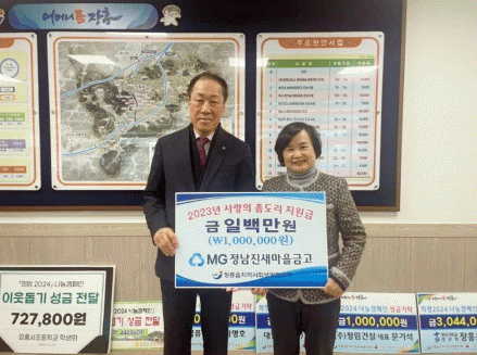[¹Ìµð¾îÀü³² Á¦°¥´ëÁ¾ ±âÀÚ]ÀåÈﱺ Á¤³²Áø»õ¸¶À»±Ý°í´Â 1ÀÏ ÀåÈïÀ¾ÇàÁ¤º¹Áö¼¾Å͸¦ ¹æ¹®ÇØ »ç¶ûÀÇ Á»µµ¸® ¿îµ¿À» ÅëÇØ ¸ð±ÝÇÑ ¼º±Ý 100¸¸¿øÀ» ±âŹÇß´Ù. ¿ÃÇØ·Î 26³â° ÁøÇàµÇ´Â ¡®»ç¶ûÀÇ Á»µµ¸® ¿îµ¿¡¯Àº »õ¸¶À»±Ý°íÀÇ ´ëÇ¥ÀûÀÎ »çȸ°øÇ塦