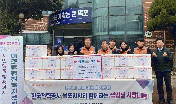 [¹Ìµð¾îÀü³² °í±Ô¼® ±âÀÚ]Çѱ¹Àü·Â°ø»ç ¸ñÆ÷Áö»ç´Â Áö³ 1ÀÏ ¼³ ¸íÀýÀ» ¸Â¾Æ ¼Ò¿ÜµÈ Ãë¾à°èÃþ¿¡ ÀüÇØ´Þ¶ó¸ç ¡°»ç¶ûÀÇ ¼³ ¸íÀý ¼±¹° ²Ù·¯¹Ì 15»óÀÚ(150¸¸¿ø »ó´ç)¡±¸¦ À̷ε¿ ÇàÁ¤º¹Áö¼¾ÅÍ¿¡ ±âŹÇß´Ù. ¼³ ¸íÀý ¼±¹°²Ù·¯¹Ì´Â ¸ñÆ÷½Ã ¼ÒÀ硦