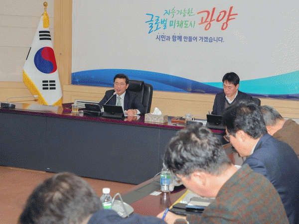 [¹Ìµð¾îÀü³² ÀÓ¼º¿Ï ±âÀÚ]±¤¾ç½Ã´Â 1ÀÏ ½Ãû »óȲ½Ç¿¡¼ ½Ç¡¤´Ü¡¤°úÀå ÀÌ»ó °£ºÎ °ø¹«¿øÀÌ Âü¼®ÇÑ °¡¿îµ¥ ÁÖ¿ä Çö¾È¾÷¹«¸¦ °øÀ¯Çϰí ÇùÀÇÇÏ´Â ÀÚ¸®¸¦ °¡Á³´Ù. ȸÀǸ¦ ÁÖÀçÇÑ Á¤ÀÎÈ ±¤¾ç½ÃÀåÀº ¸ÕÀú ÁÖ¿ä »ç¾÷ÀÇ ½Å¼ÓÇÑ ÃßÁøÀ» °Á¶Çϸ硦