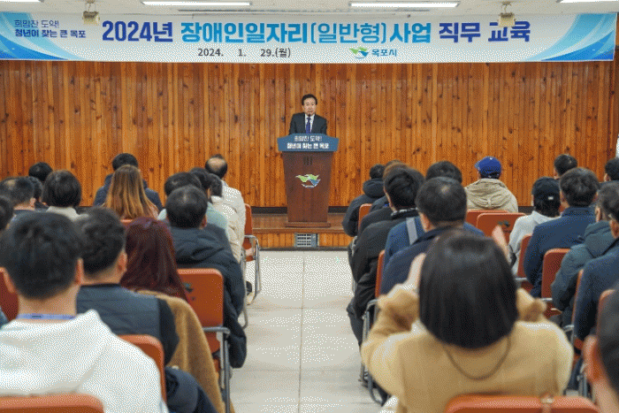 [¹Ìµð¾îÀü³² °í±Ô¼® ±âÀÚ]¸ñÆ÷½Ã°¡ Áö³ 29ÀÏ ¡®2024³â Àå¾ÖÀÎÀÏÀÚ¸®»ç¾÷(ÀϹÝÇü) Âü¿©ÀÚ Á÷¹«±³À°¡¯À» °®°í Àå¾ÖÀÎÀÏÀÚ¸® »ç¾÷À» º»°Ý ÃßÁøÇÑ´Ù. »ç¾÷Âü¿©ÀÚ ¹× ¹èÄ¡±â°ü °ü°èÀÚ µî 80¿©¸íÀÌ Âü¼®ÇÑ À̳¯ Á÷¹«±³À°¿¡¼ ½Ã´Â »ç¾÷±ÔÁ¤ ¡¦